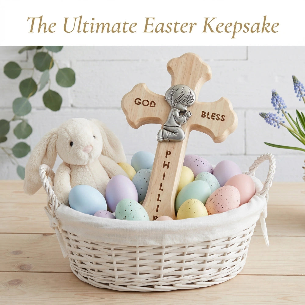 Prayerful Child Personalized Wood Cross | Custom Easter & Baptism Keepsake