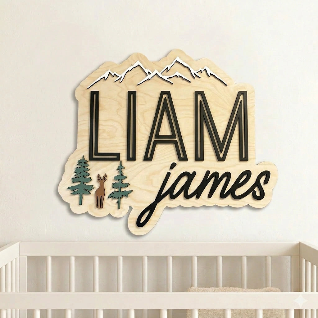 Custom Woodland Baby Name Sign | 3D Wooden Nursery Decor