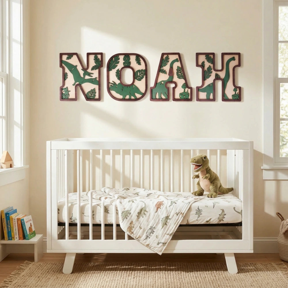 Personalized 3D Layered Dinosaur Wooden Name Sign | Custom Kids Nursery Decor & Baby Shower Gift