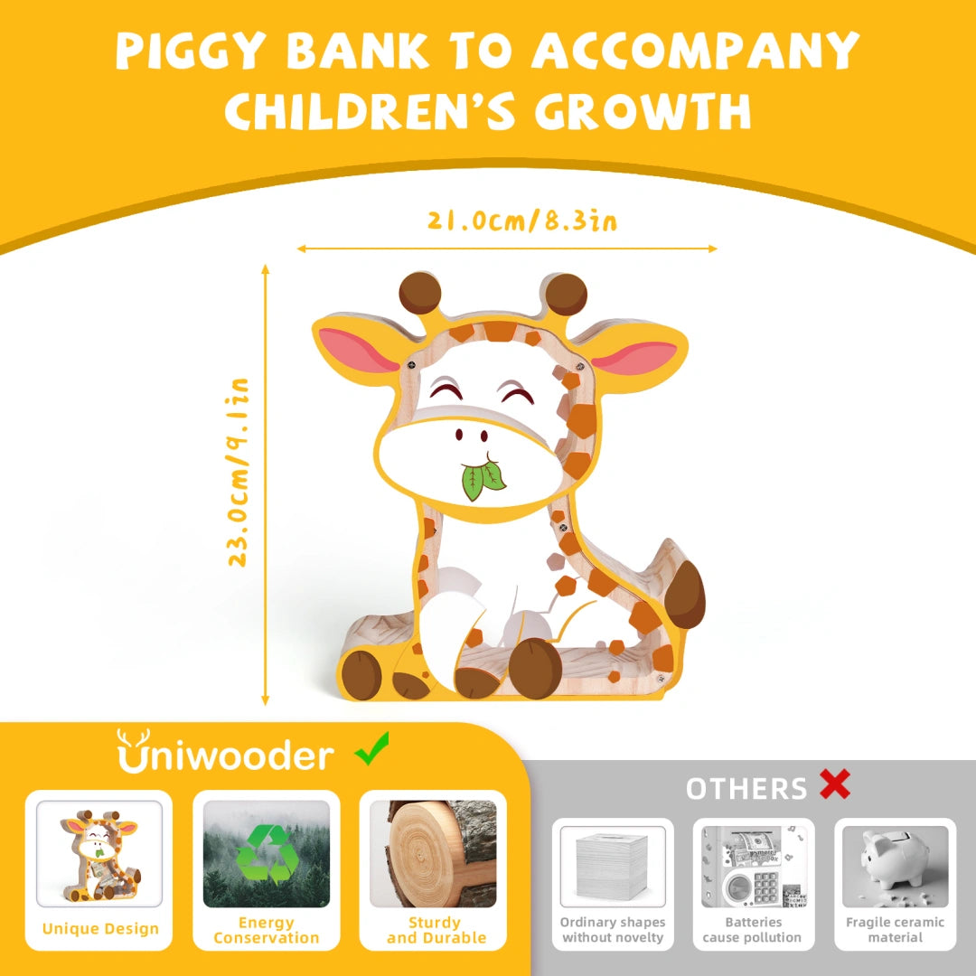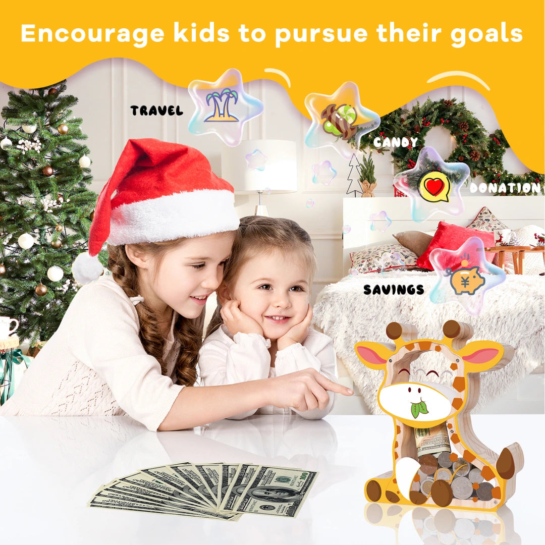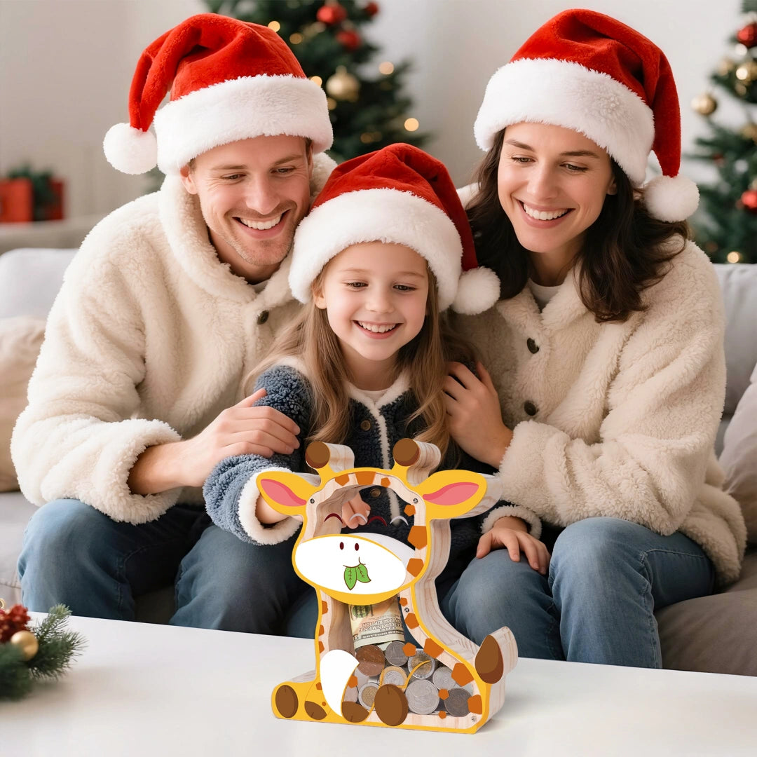 Wooden Giraffe Piggy Bank for Kids – Transparent Acrylic Money Box