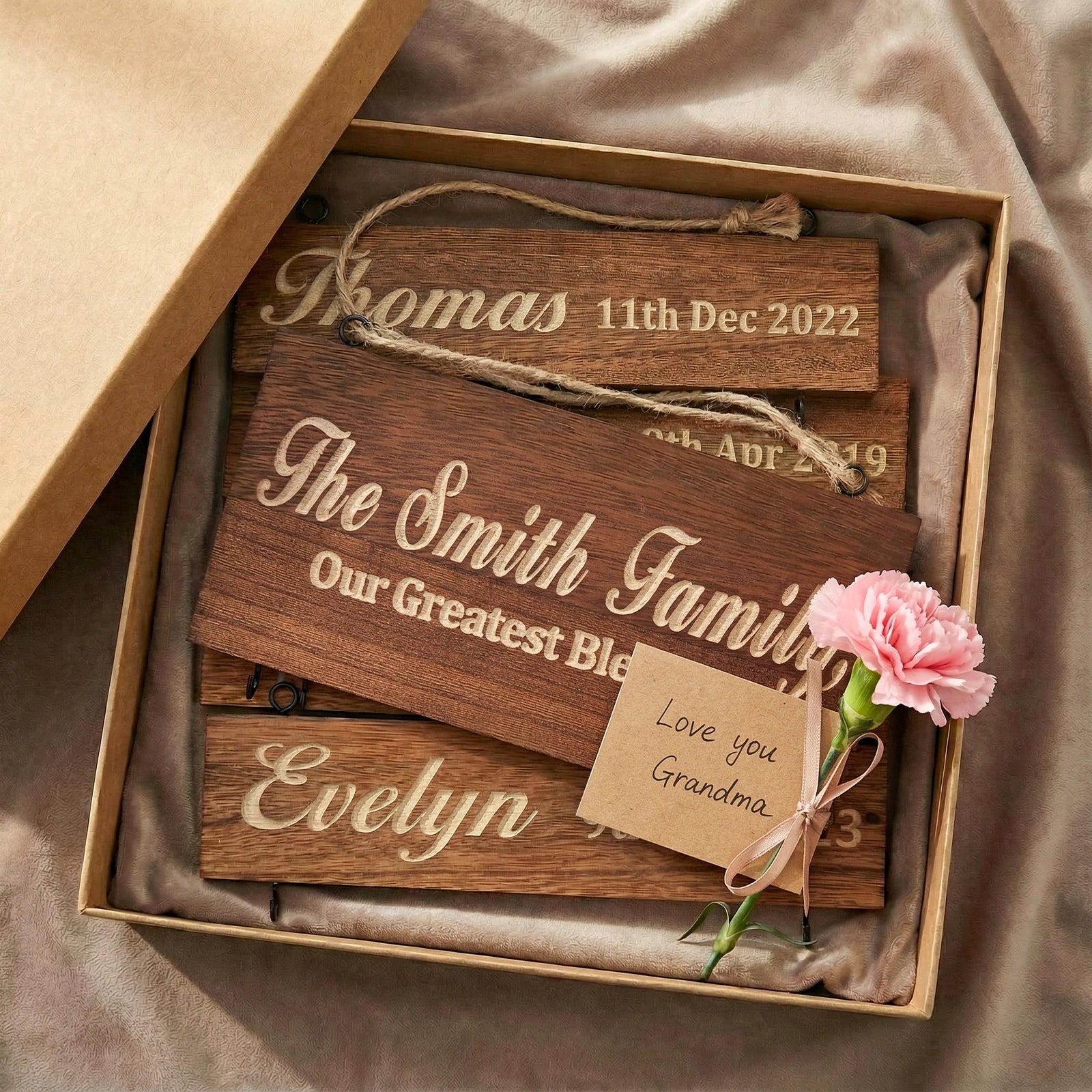 ✅ Deep Physical Engraving: We physically carve the names into the wood using CNC technology. You can feel the depth with your fingers.