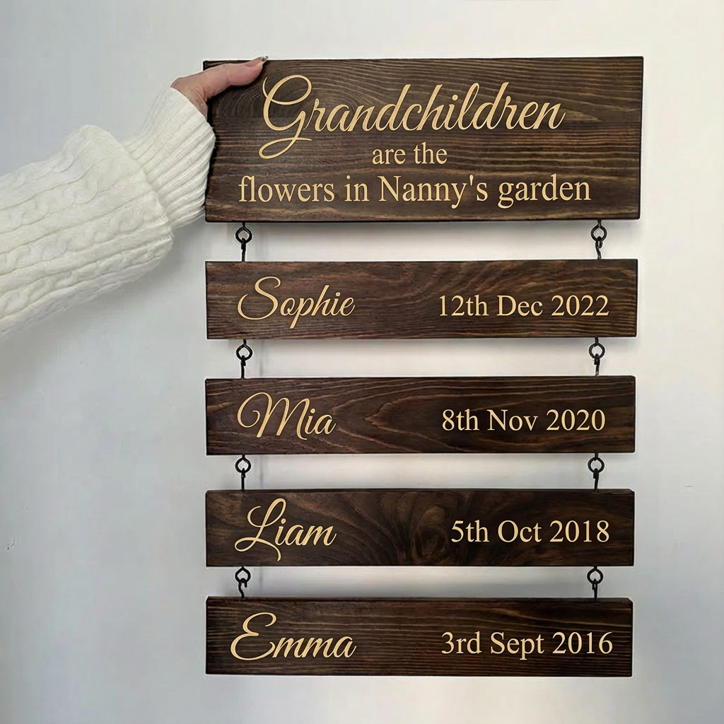 Personalised Family & Grandchildren Wooden Plaque | Deep Engraved Edition