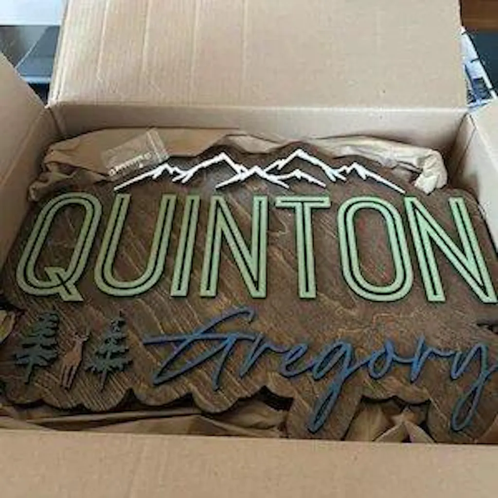 🪚 Precision 3D Layered Details This isn't flat, painted-on decor. Every name and woodland element is individually precision-cut from premium wood and raised above the backer. The result is a stunning 3D shadow effect that catches the natural light beautifully.