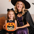 Featuring a playful jack-o'-lantern face and witch hat, it's a fun way to celebrate Halloween.